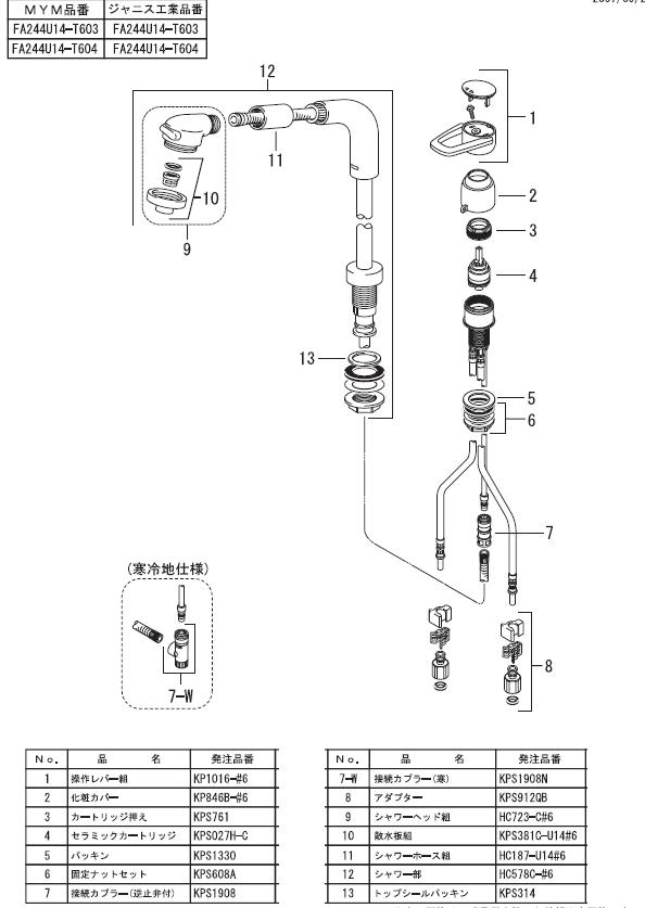 約18年前のYAMAHA洗面台の旧MYM製水栓FM244-021からじわじわと水漏れが起こり色々とwebで調べて下記部品にたどり着きました。