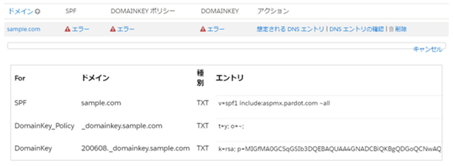 Pardotから送信するメールの到達率を向上のためにSPF/DomainKeyをDNSに追加します。