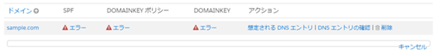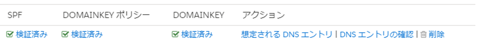 - DNSにSPF、DomainKeyの3レコードの追加が完了したら、[DNSエントリの確認]をクリックします